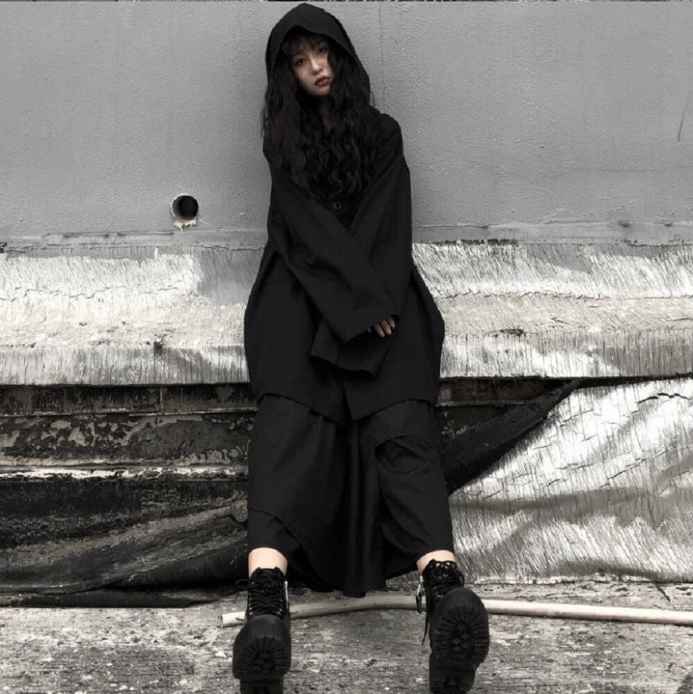 ガウチョパンツ レイヤード ブラック 韓国ファッション ワイドパンツ ロング フレア 黒 ブラック モード系 ゴシック ゴスロリ ロリータ 大人かわいい フェミニン ビッグシルエット フリーサイズ モノクロ 変形 ゆったり オーバーサイズ 黒無地 シャツ モノトーン 病み 個性的 モード系 レディース ストリート系 原宿系 アシンメトリー