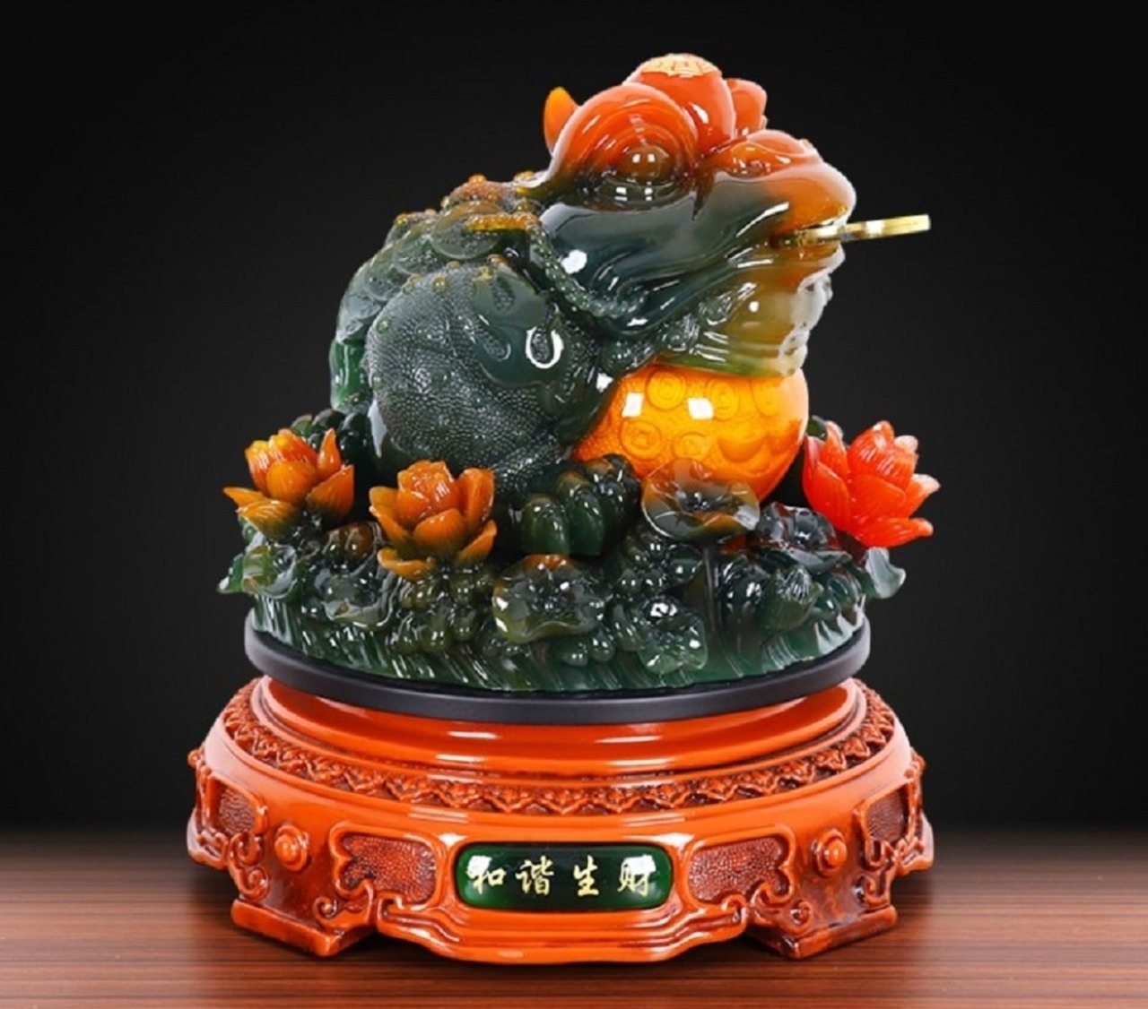 蓮の花の上に座る蛙は大変ご利益が高い神聖な置物です。