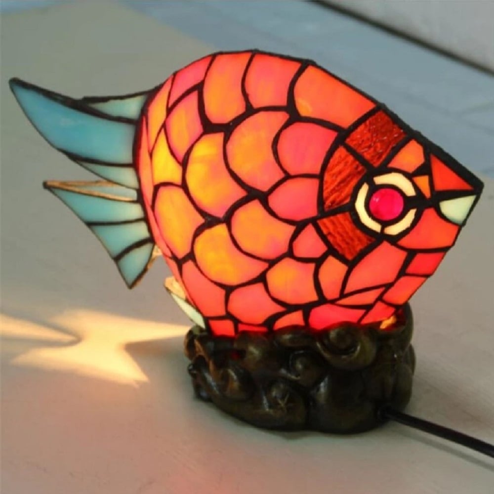 【在庫限り】 照明 ステンドグラスランプ 魚 テーブルランプ ティファニーライト 卓上照明 間接照明 デスクライト 1灯 北欧 おしゃれ モダン 幻想的 ステンドグラス 芸術的 アート カラフル レトロ プレゼント 贈り物 ライト 屋内 寝室 店舗 インテリア