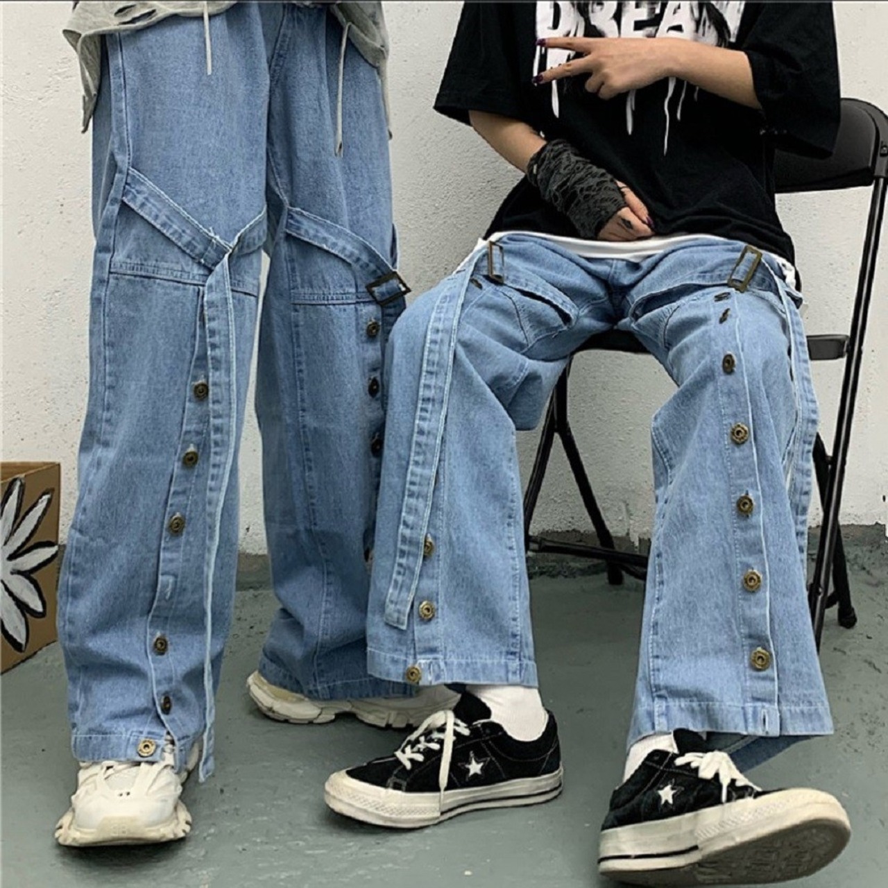 デニム パンツ ボタン ボトムス Gパン 韓国ファッション ズボン ベルト 紐 ジーパン レッグベルト メンズ レディース ユニセックス クラシック ヴィンテージ アンティーク バースデー ギフト ファッション k-pop 韓流 韓国 ビッグシルエット