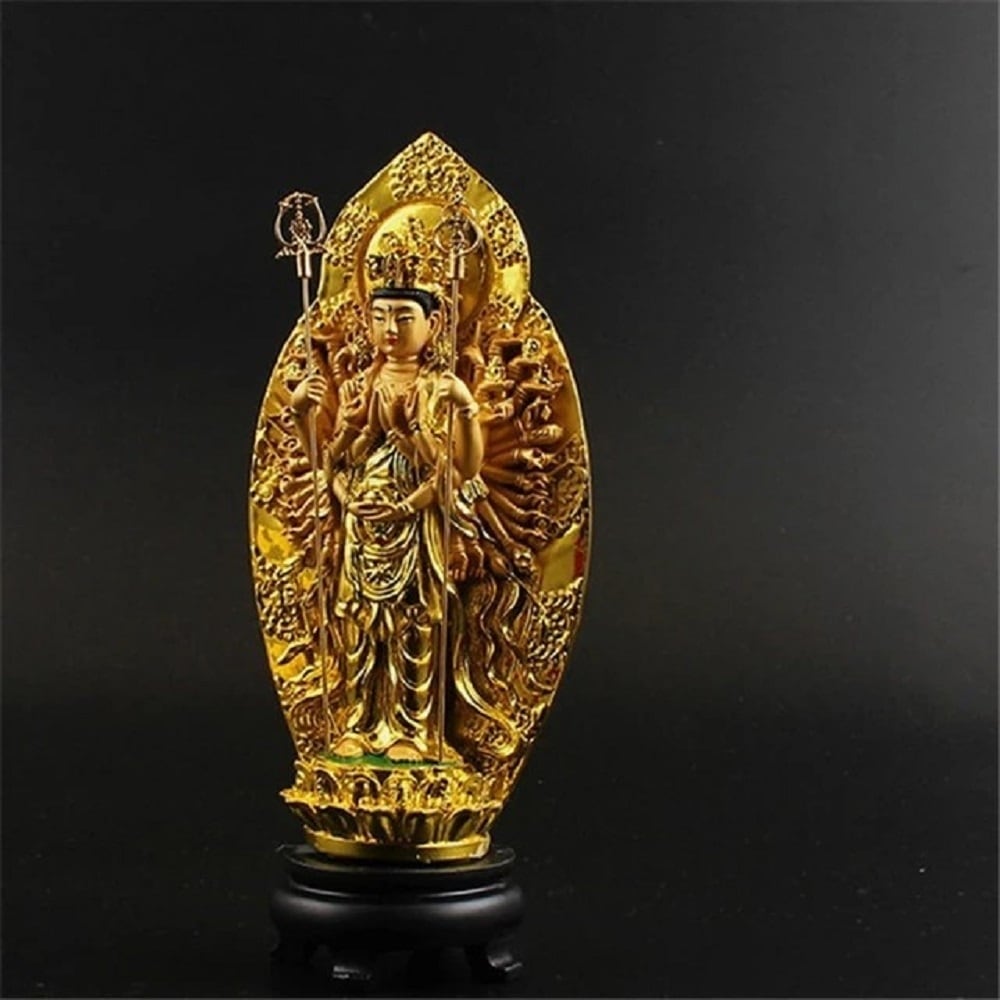置物 黄金 千手観音菩薩 杖 両手 風水 置物 仏像 風水グッズ 観音様 仏様 縁起物 飾り物 癒し 千手観音 開運祈願 金メッキ仕上げ 仏像 せんじゅかんのんぼさつ 十二支 守り本尊 彩色仕上げ インテリア 仏具 御守仏 お守り仏像 干支本尊