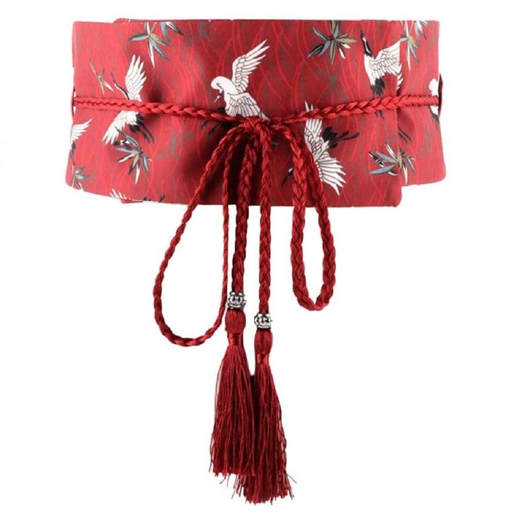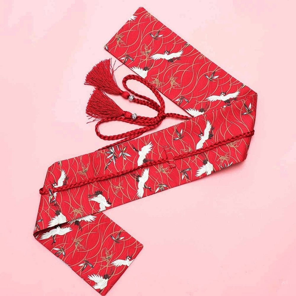帯ベルト 鶴柄 サッシュベルト 韓国ファッション ウエストベルト 和装 レトロ 結婚式 着物 浴衣 着付け小物 腰紐 鶴 和柄 和テイスト かわいい おしゃれ ベルト