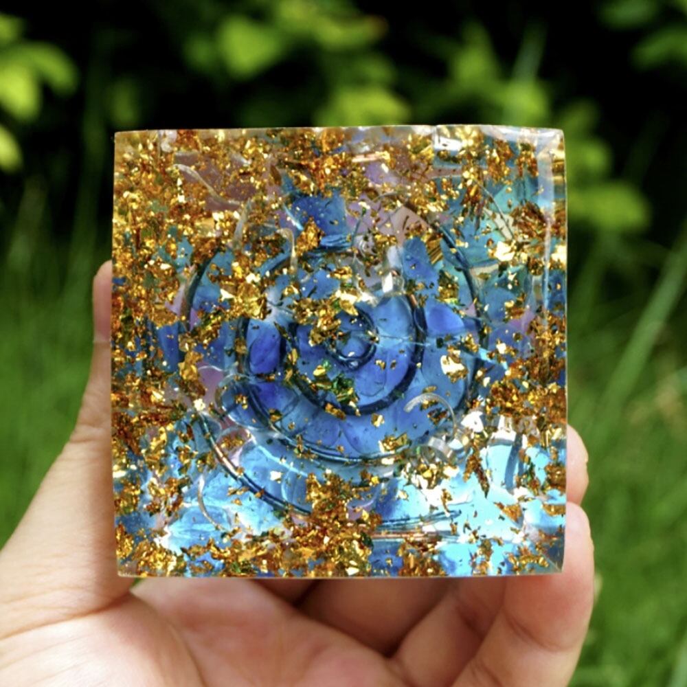 置物 オルゴナイト カラフル 球体 惑星 金箔 ストーン チャクラ 幸運 パワー 石 コイル 有機物 無機物 ピラミッド 三角 三角形 樹脂 パワ−ストーン 癒し 浄化 パワースポット マイナスイオン スピリチュアル 健康 開運