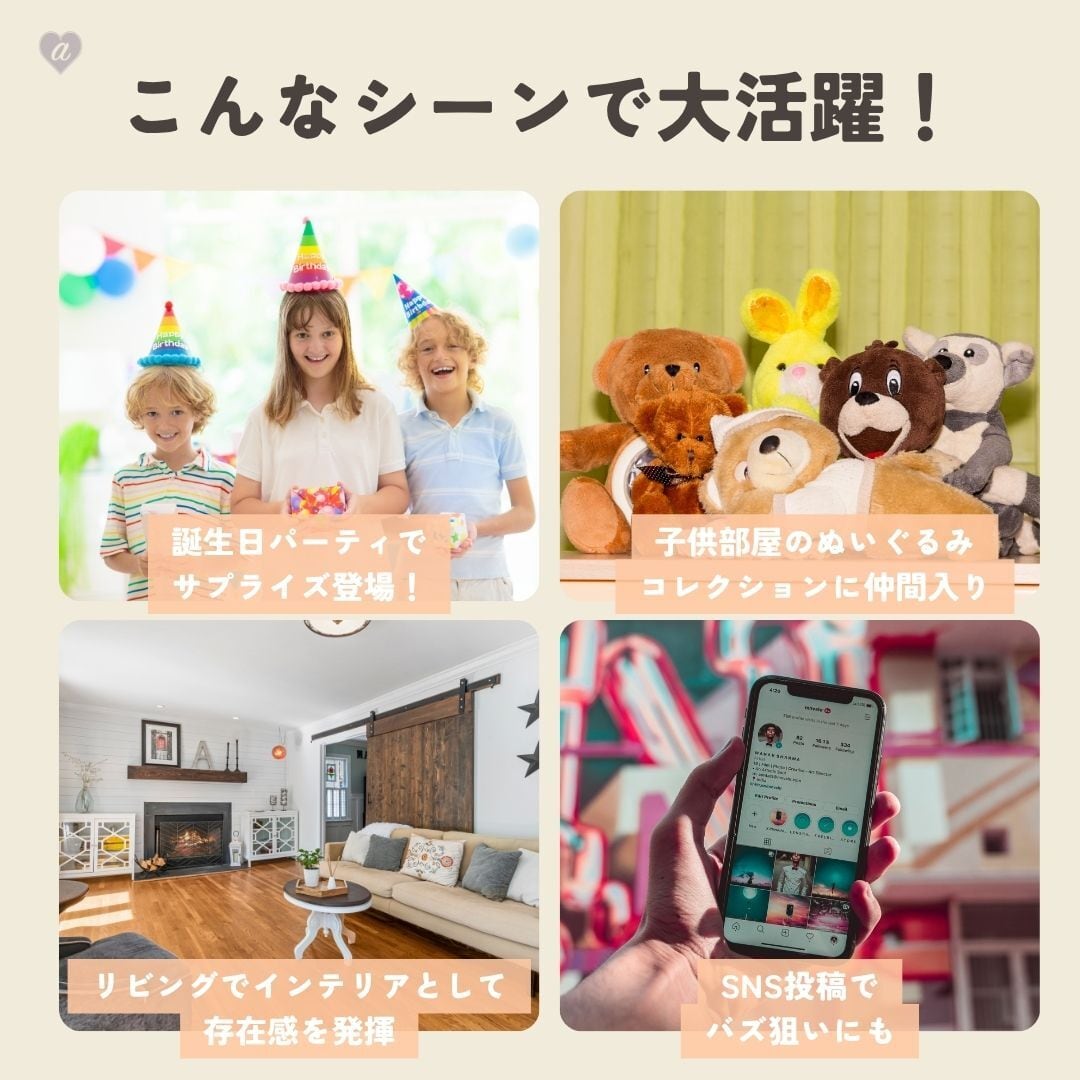 さらにソファーやリビング、寝室のベッドなどのお供にしていただいてもとても可愛いです。舌もペロリと出ていて愛くるしいです