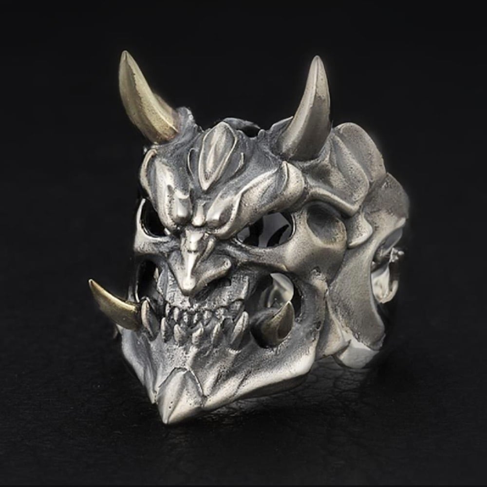 深い恨みの念を表す鬼の顔を模したデザインで巧に彫金したリングです。鬼の周りで揺らめく鬼火が見えるような美しい造形で妖しさを増し独特の世界を作り上げます。視線を集めること間違いなしのインパクト大なシルバーアクセサリーです