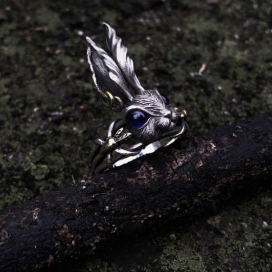 リング ウサギ ラビット 青い目 ファンタジー 指輪 アクセサリー お守り 厄除け 魔除け スタイル お洒落アイテム 開運厄除 祈願成就 風水 パワースポット 開運 金運 財産運 出世運 恋愛運 おしゃれ かっこいい 高級 ギフト アンティーク風