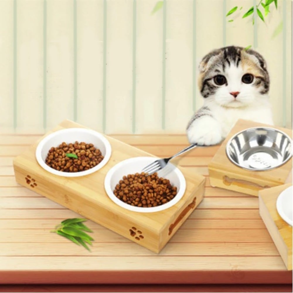 愛犬、愛猫のためのペット用のペットと環境に優しい木製のスタンドと陶器ボウルのセットです。高級感もありお手入れもラクラクです