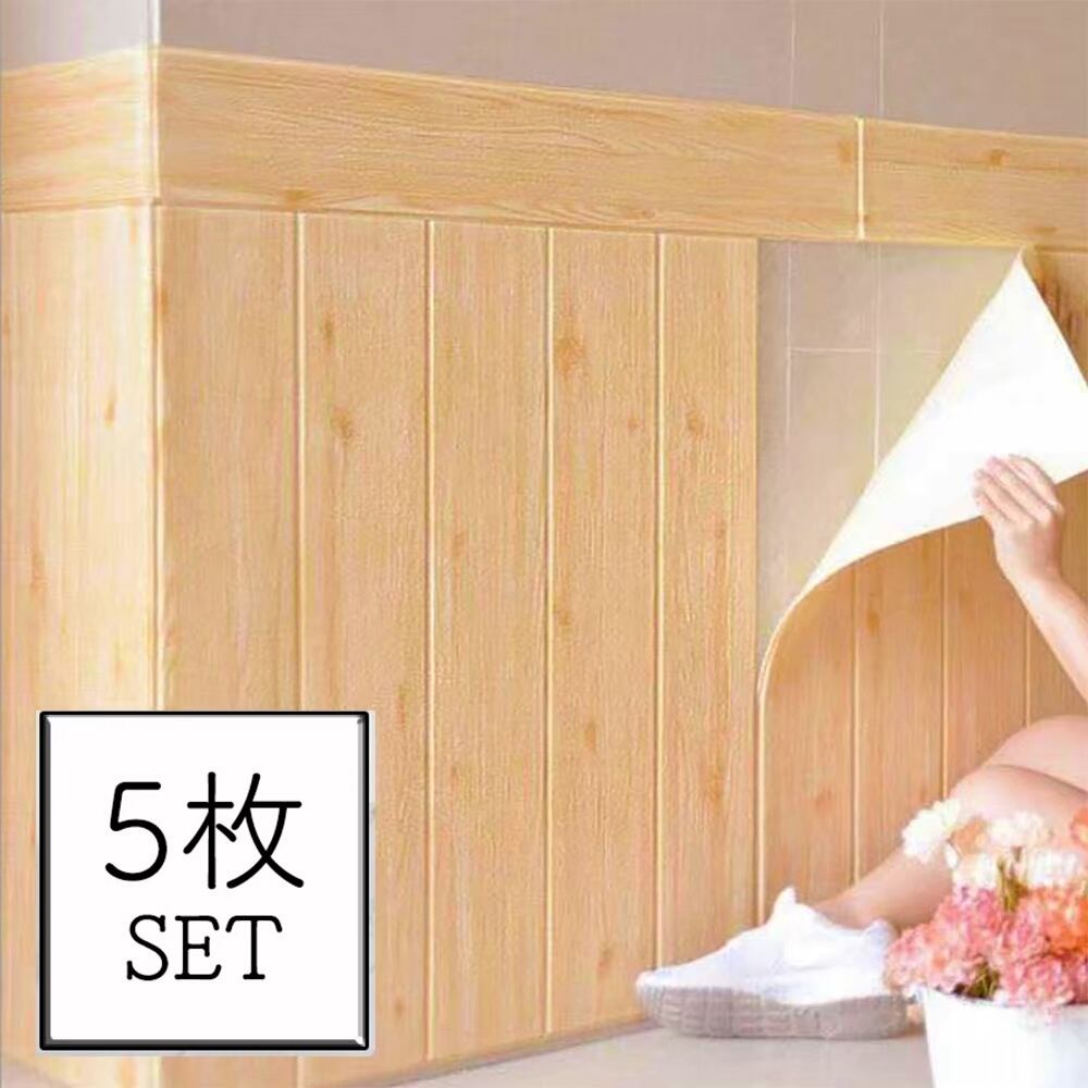 【在庫限り】壁紙 3Dウォールステッカー 木目 5枚セット リメイクシート 防水 ウォールステッカー リノベーション リフォーム 子供部屋 DIY 木目調 ブリックタイル 剥がせる壁紙 簡単壁紙 接着剤不要 粘着 シール おしゃれ アレンジ