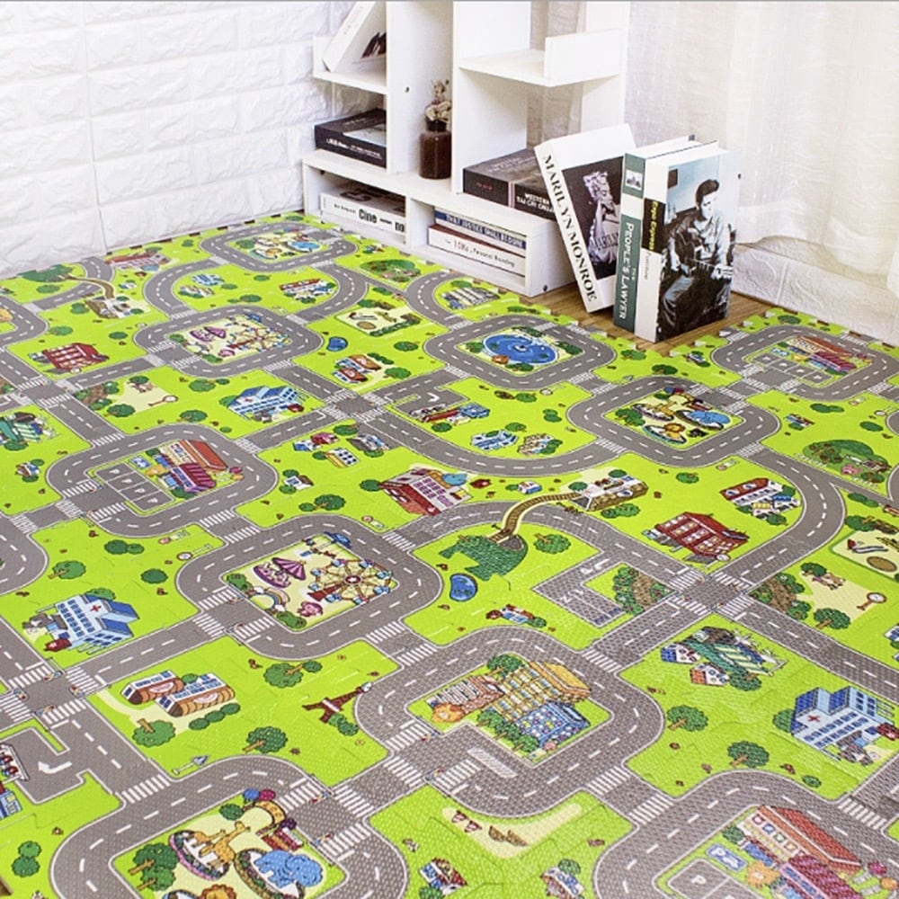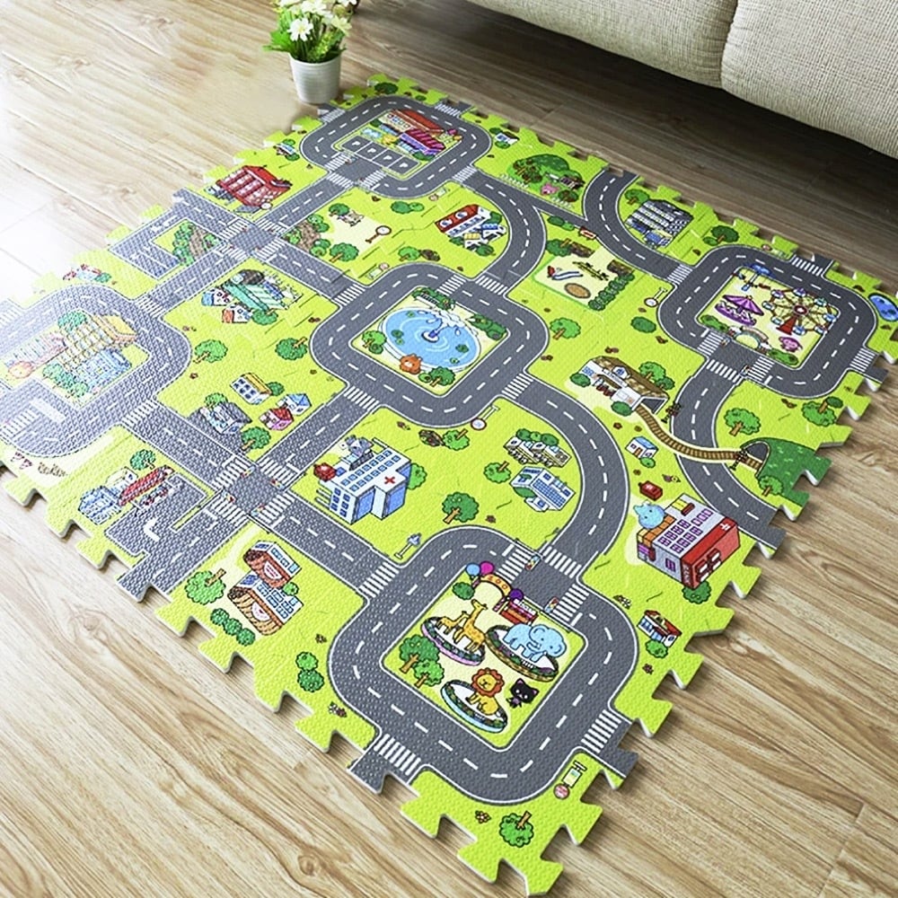 玩具 ジョイントマット 9ピース 道路 街並み プレイマット ジャンボプレイマット 車 トラック 遊園地 動物 動物園 ビル スーパー 噴水 地図 知育玩具 男の子 女の子 ロード 知育 遊び 知育遊び 学べる 3歳 4歳 5歳 6歳 子供 キッズ プレゼント 誕生日 教育玩具 学習玩具 右脳 学校 保育園 支援センター 児童クラブ