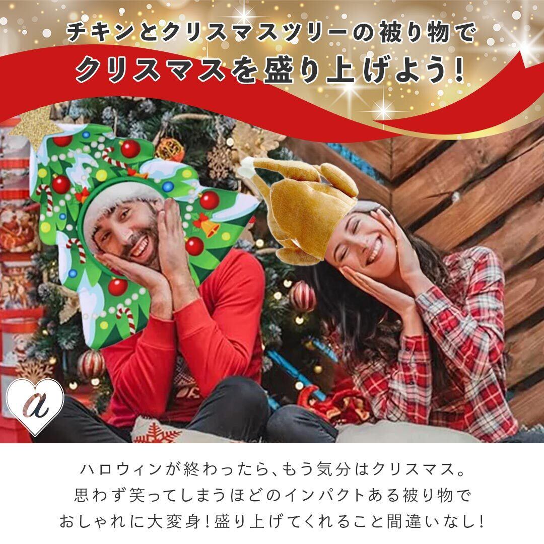 芸達者な人気者のマストアイテム、チキン&クリスマスツリーの被り物で一瞬で場を盛り上げましょう。