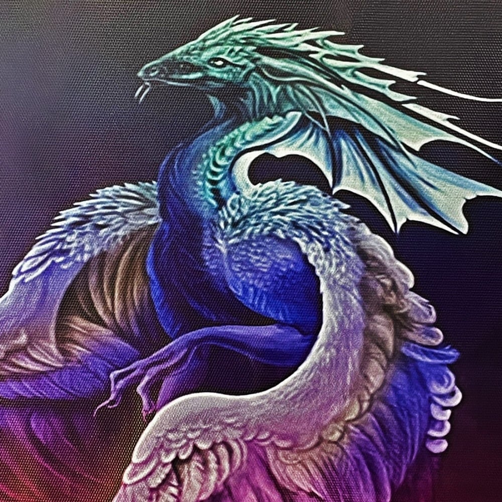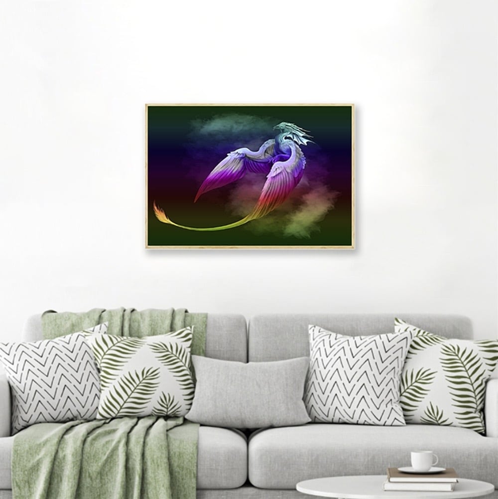 ファンタジーな虹龍の絵がプリントされた絵画です。龍は、愛情運、財産運、金運、仕事運、出世運の分野に優れた力を発揮します