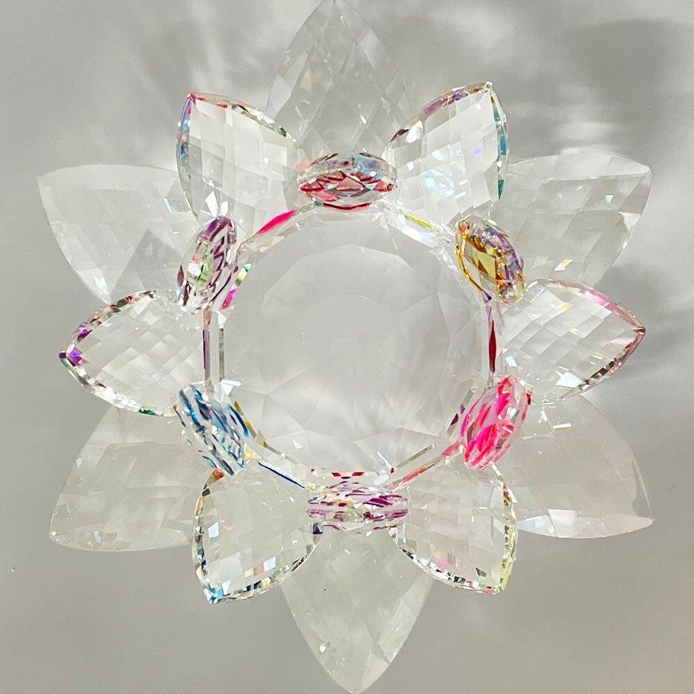 蓮の花には香気・清浄・柔軟・可憐の4つの徳があるとされています。これはクリスタルの花びらで形作った幸運の蓮の花です