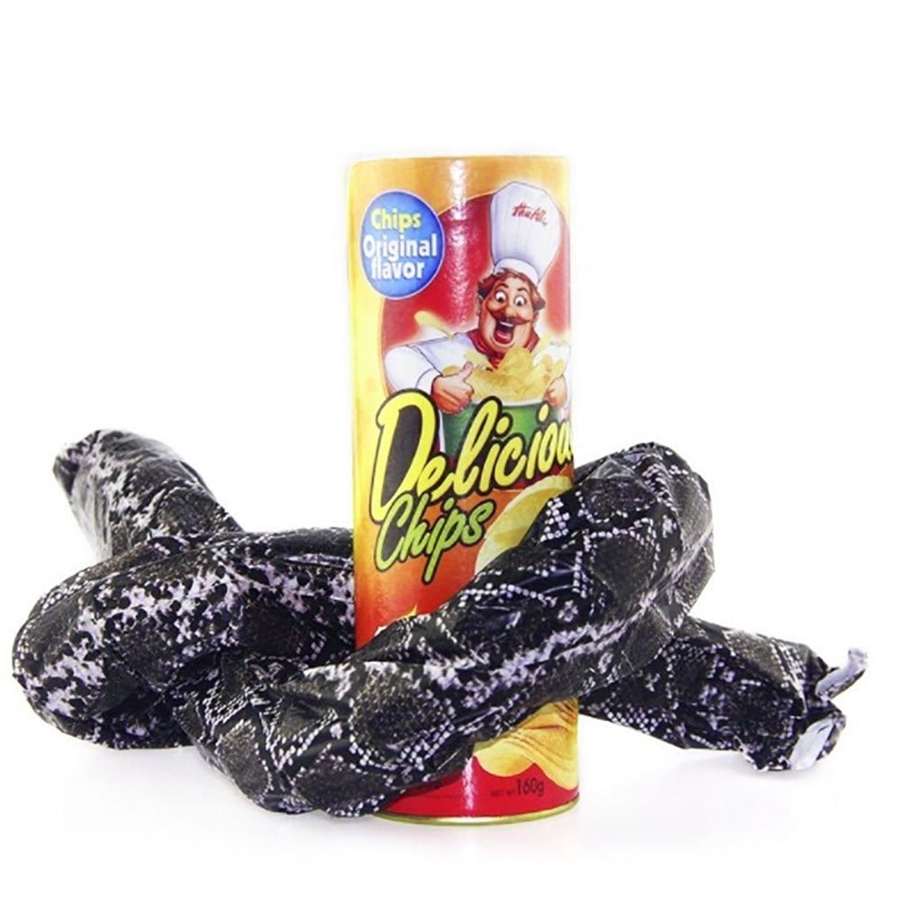 このおもしろおもちゃグッズは、箱が机の上に置かれていると、ポテトのお菓子かと思い、中を開けて食べようとします。箱を開けると、蛇模様のバネが飛び出し、かなり派手に驚きその後に、盛り上がって楽しい気持ちになって笑っていただけます