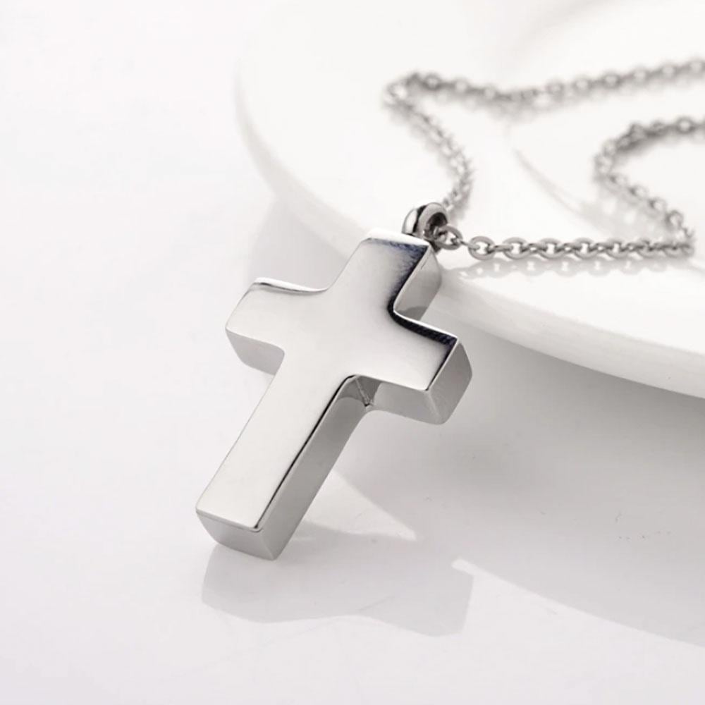 ネックレス 十字架 シンプル クロス 遺骨ネックレス キリスト イエス ジュエリー チェーン付き アクセサリー メモリアルネックレス 火葬ネックレス 生活防水 遺骨カプセル 遺骨入れ 手元供養 犬 猫 ペット供養 いつも私の心に