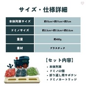 60枚のプラスチック製のブロックです。お子様の自由にトレインを走らせてドミノを並べることができます。トレインで並べ終わったら倒して遊びましょう!