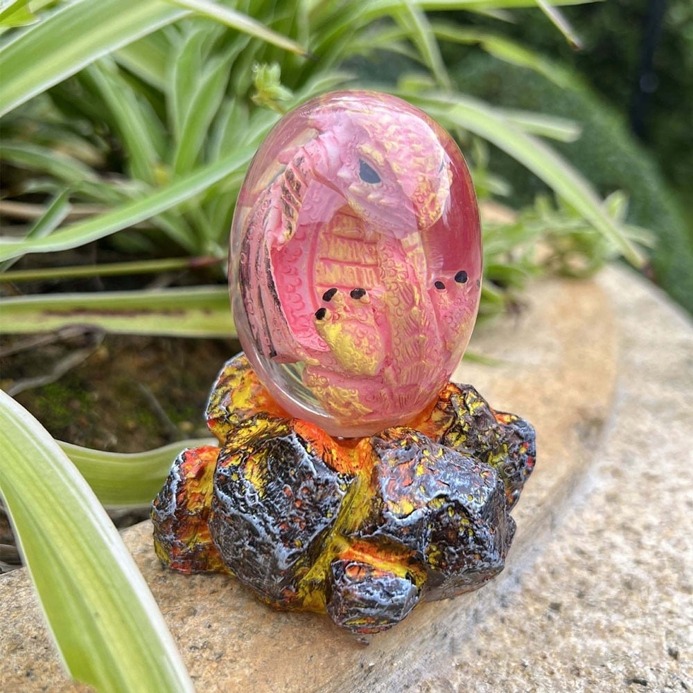 溶岩のLEDを浴びると卵の中のドラゴンがキラキラと輝き、縁起の良い開運招福、竜の置物です