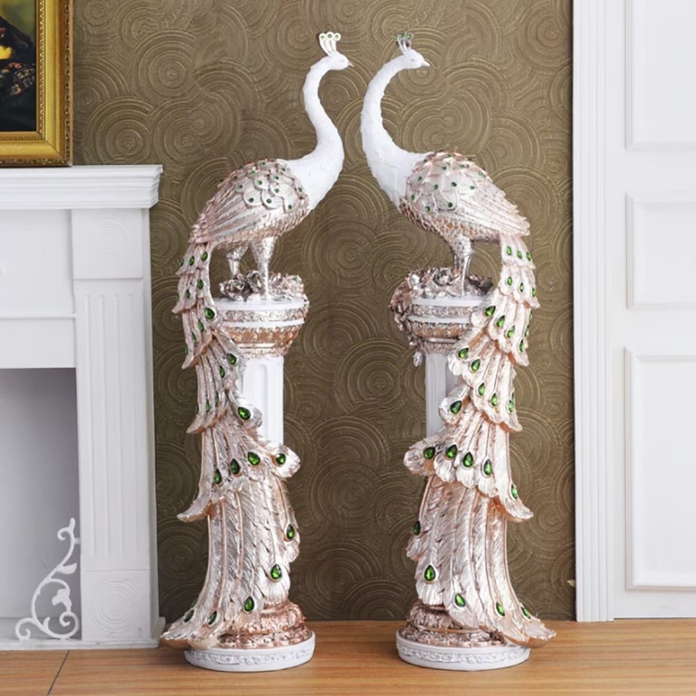 孔雀の置物をおくことで究極の幸運に包まれ、富と繁栄がもたらされるといわれています。また、まばゆい色彩を放つ孔雀の羽は、失恋した人に愛をもたらすといわれています