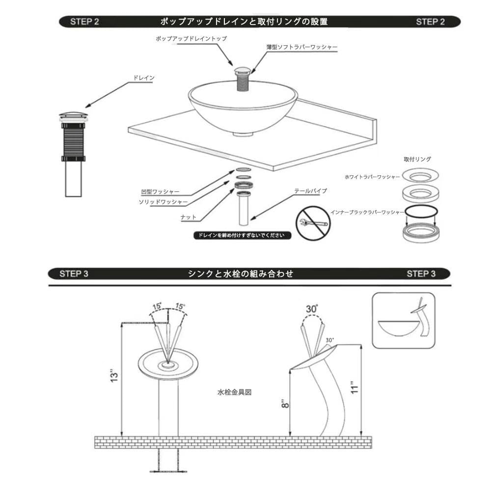 ガラスシンク、ポップアップドレイン、その他部品など