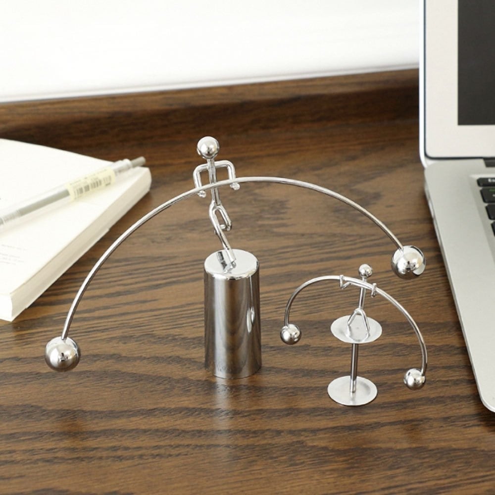 置物 やじろべえ ヤジロベエ ニュートン 片足 立ち バランス ボール 棒 科学 力学 モデル 知育 おもちゃ テーブル スタンド インテリア メタル シーソー オブジェ ニュートン アーチ状 バランスボール 玉 オブジェ 球 物理 不思議