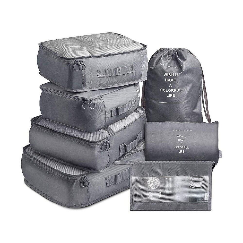 衣類、財布、スマホ、パソコン、PC、日用品、雑貨、歯ブラシ、化粧品、ブラシ、シェーバーなどの小物から大物を入れることができます。メッシュポケットもあるので、洗面具などの小物を綺麗にすきっり、また取り入れしやすく収納してくれます。7点セットで、コンパクトなので、外出時持ち運びにも便利です