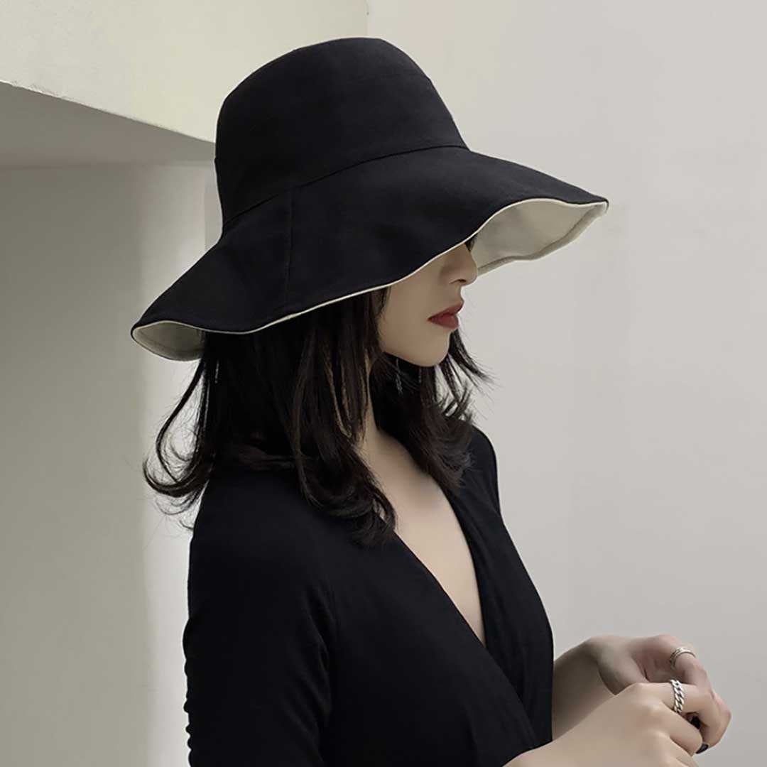 【在庫限り】帽子 バケット ハット つば広 リバーシブル 裏表 ブラック オフホワイト 韓国ファッション メンズ レディース 流行 モデル セレブ レトロ ゴシック アンティーク モダン クラシック クラシカル ヴィンテージ感 ファッション