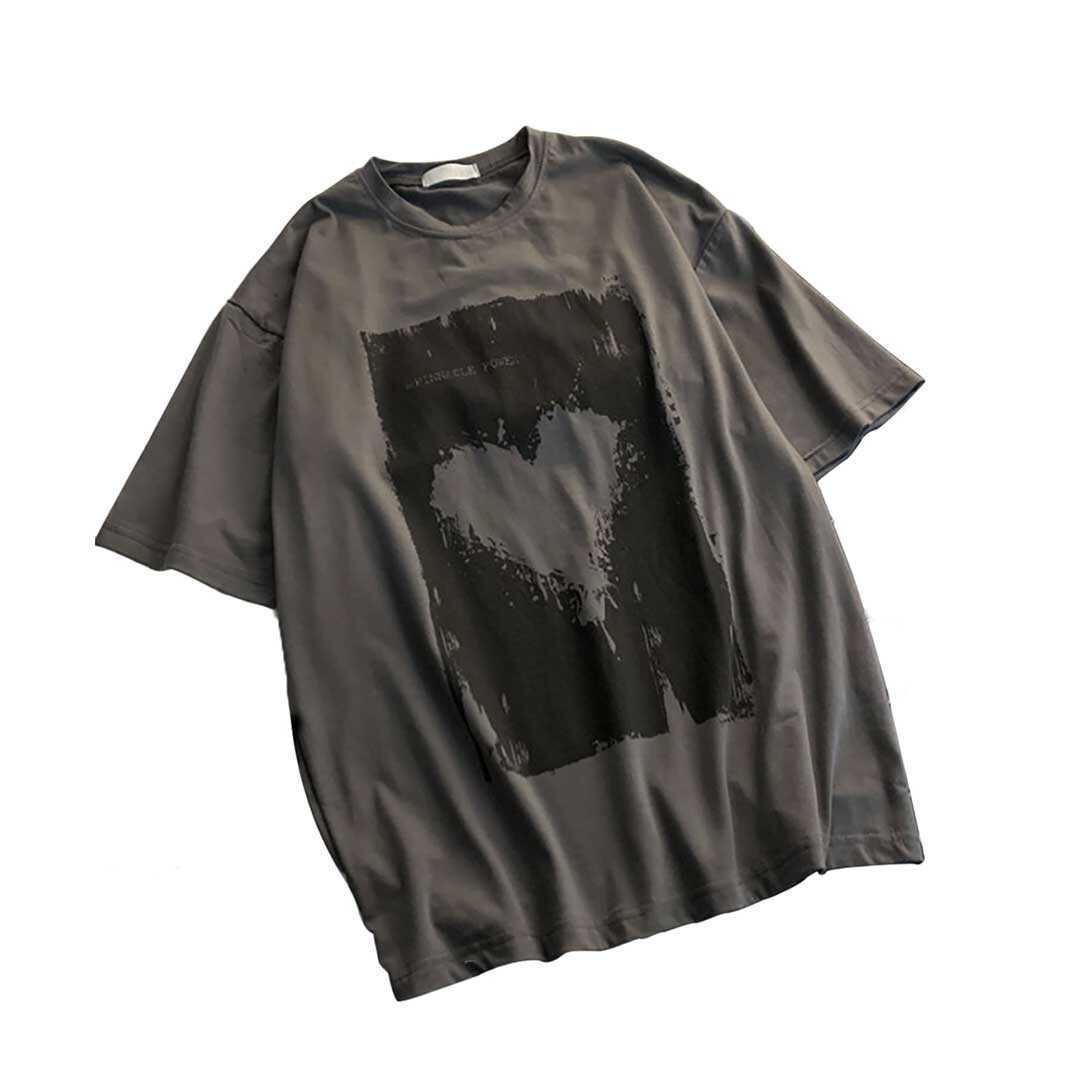 【在庫限り】Tシャツ ダークグレー ハート 半袖 Lサイズ 病みかわ 韓国ファッション 韓国 オルチャン ダーク系 k-pop 韓流 Korean ビッグシルエット 春 夏 夏服 面白い レディース メンズ ゆったり インナー 年間 ストリート マイアミ