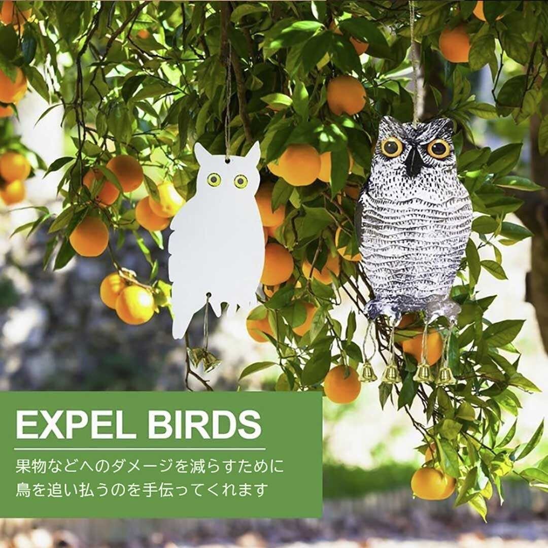 【在庫限り】鳥よけ フクロウ型 2個セット リアルorホワイト 梟 鳥よけ 猛禽類 吊り下げ ベランダ 玄関 ハト避け 予防 畑 バード 防鳥 反射板 カラス対策 防虫 からすよけ 家庭菜園 農業用品 資材 ベランダ 田畑 鳥害対策 送料無料 ハト ツバメ
