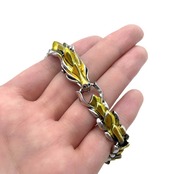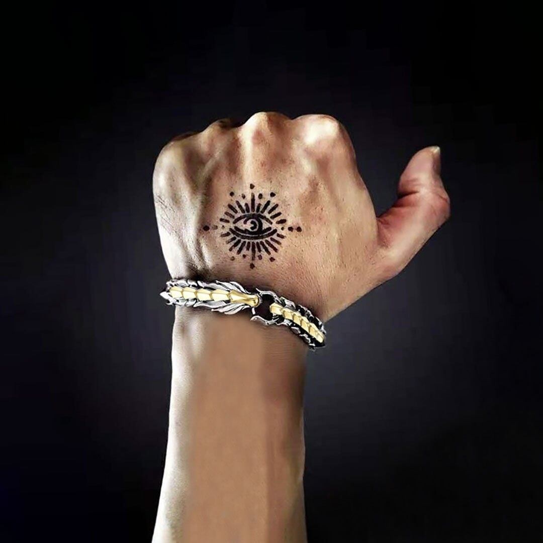 圧倒的な彫金技術で見事に造型された龍の大迫力のブレスレットです。ドラゴンモチーフのゴールドラインが入ったデザインです