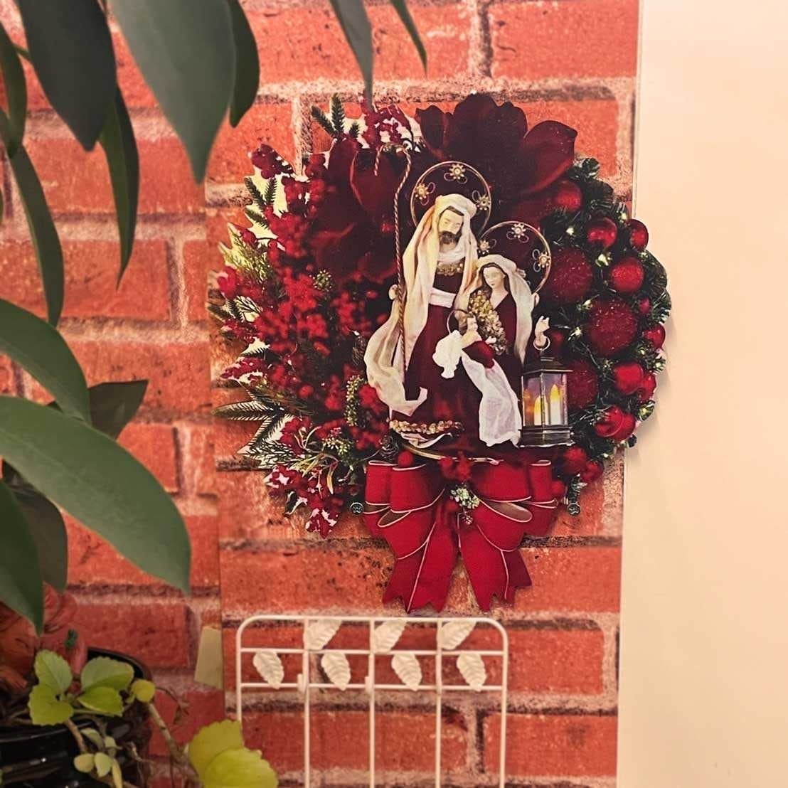 クリスマス マリア キリスト 装飾 30cm ドア吊り下げ 木製 クリスマスサイン 吊り下げ ヒモ 紐付き 掛け飾り デコレーション壁掛け リボン ショーウィンドー 飾りドア飾り 部屋飾り 窓の装飾 玄関リース プレゼント お店 カフェ
