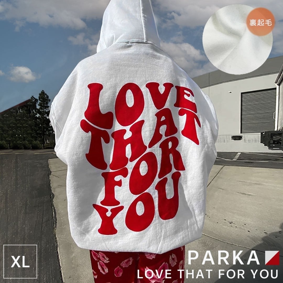 【在庫限り】パーカー LOVE THAT FOR YOU ホワイト トップス プルオーバー 韓国ファッション ビッグプルオーバー メンズ レディース カットソー スウェット スエット トレーナー 長袖 長そで 十分袖 十分そで 10分袖 ボリューム袖 ボリュームスリーブ ぽわん袖