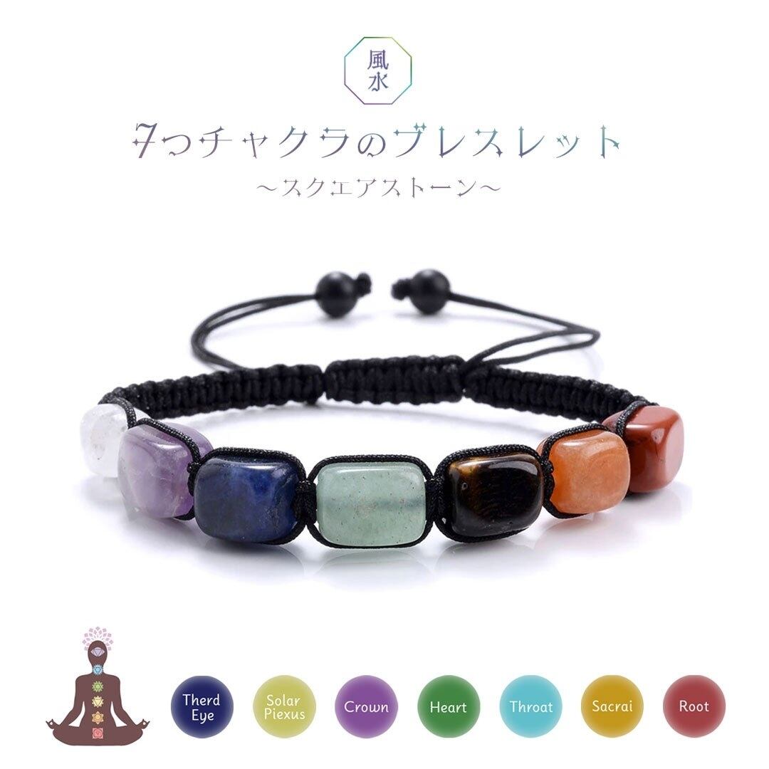 【在庫限り】ブレスレット 四角 紐タイプ 7つのチャクラ ヒーリング ヨガ パワーストーン シンプル ジュエリー アクセサリー スピリチュアル 魔除け お守り 瞑想 デート 腕輪 厄除け 魔除け スタイル お洒落アイテム 開運厄除 祈願成就 風水 パワースポット 開運 金運
