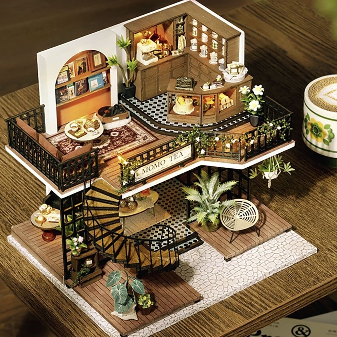 インテリア MOMO TEA ドールハウス ジオラマ 建築模型 DIY ミニチュア 手作りキット セット ヨーロッパ 英国 ティーハウス 紅茶 カフェ 喫茶店 おしゃれ イギリス LEDライト アクリルケース 秘密 シークレット キット アート ファンタジー世界 照明