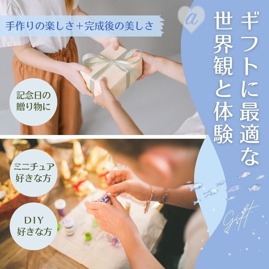 見た目の可愛さと“手作りの楽しさ”を贈れるため、DIY好きな方はもちろん、ミニチュアやインテリアが好きな方へのプレゼントにも最適です。
