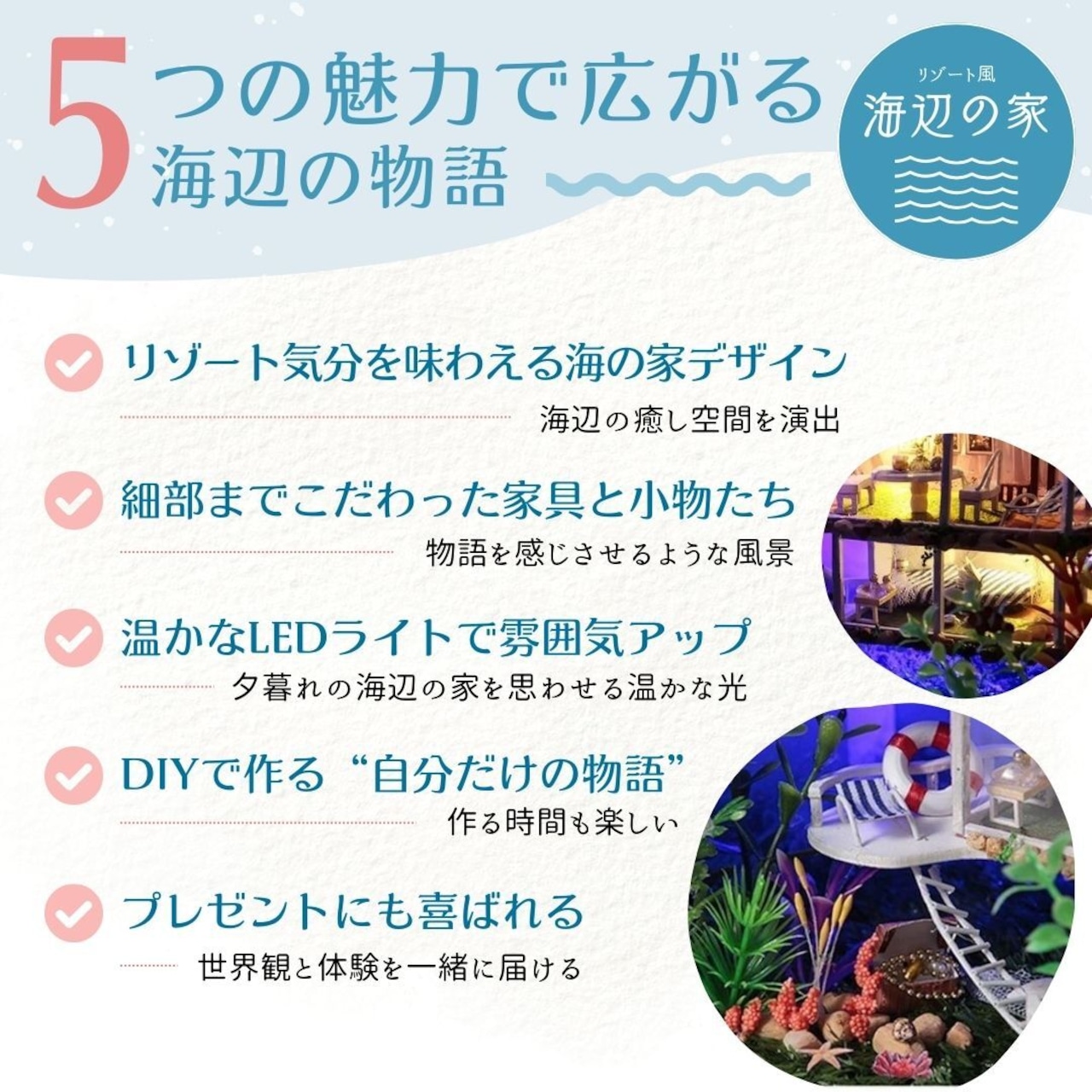 DIY 海の家 ミニチュアドールハウス LEDライト 組み立てキット 自分で作る リアルな家具 家庭用 装飾品 おもちゃ クリエイティブ 贈り物 思考力 創造力 家 照明 LED ライト 飾り イルミネーション 電池式 デコレーション 新年 結婚式 誕生日 祝日 飾り付け 飾り 華やか おしゃれ きれい お洒落 雑貨 北欧 アメリカ サンタ サンタクロース バースデー ギフト お誕生日祝い 結婚 内祝い ブライダルギフト 成人の日 引越し祝い 新築祝い お返し品 引っ越し 御祝い 開業祝い 卒業記念 謝恩会 入学記念 母の日 父の日 引き出物 賞品 景品 記念品 お返し物 贈り物 営業 開院祝い 開店祝い クリスマス プレゼント