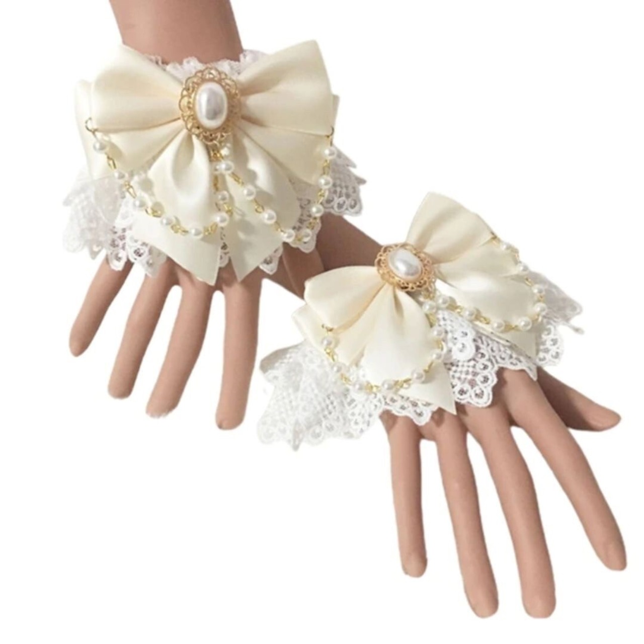 【在庫限り】アクセサリー フリルレース ブレスレット ブラックorホワイトorシャンパンゴールド 付け袖 両腕用 腕輪 北欧 ナチュラル シンプル アジアン エスニック感 オシャレ ファッション お洒落 個性的 民族 雑貨 アンティーク コスプレ リボン
