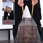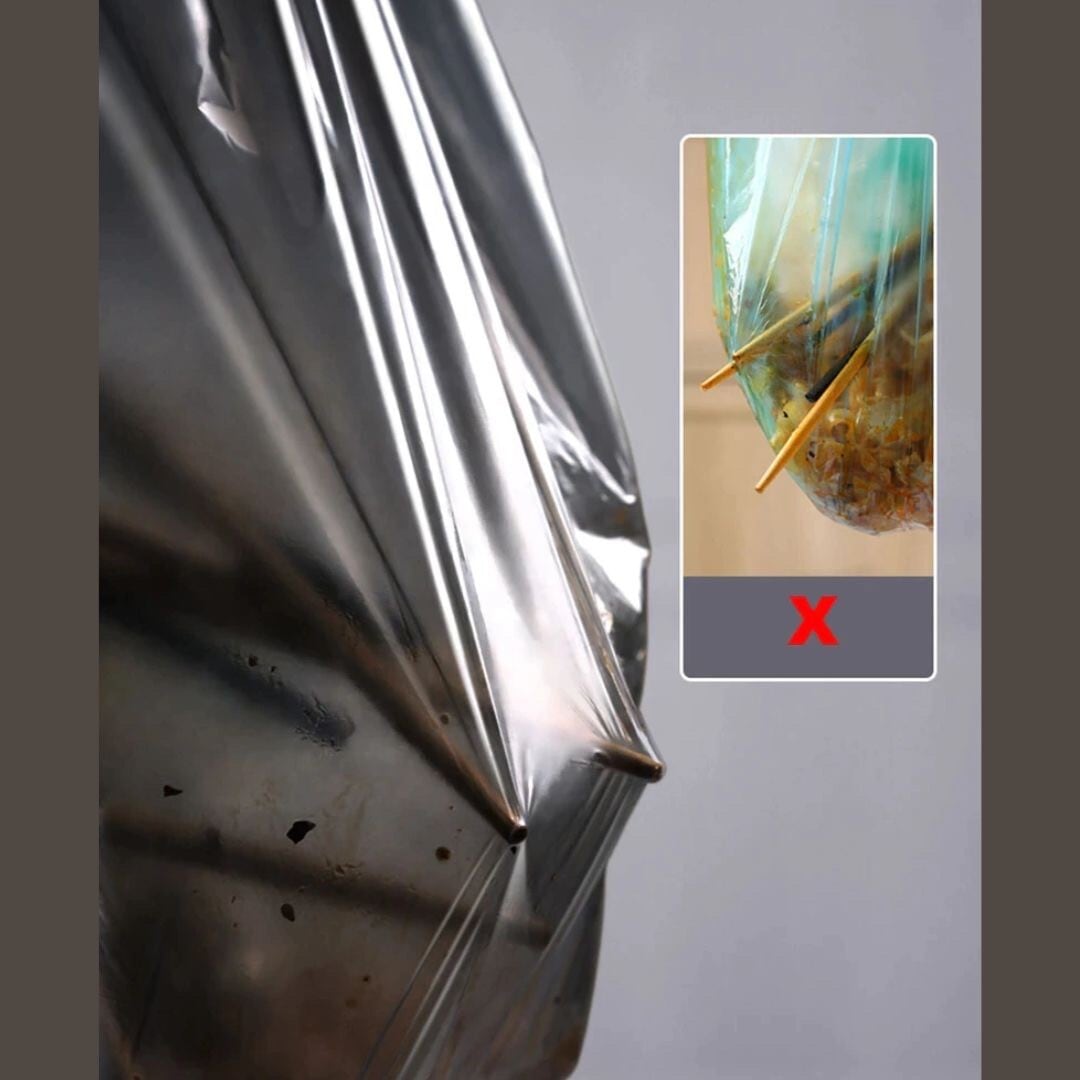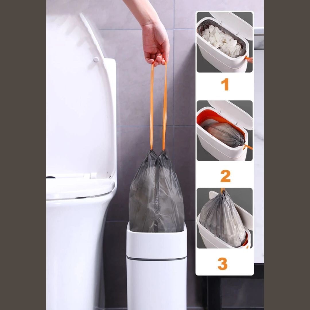 従来のごみ袋とは違い、このごみ袋は巾着紐で簡単に閉じることができます。手間を省き、手が汚れることもありません。また、臭いもこもりにくく、清潔です。従来のごみ袋よりも約30%容量アップし、破れにくいので安心してご使用いただけます。また、巾着紐が付いているため、分別回収にも便利です。