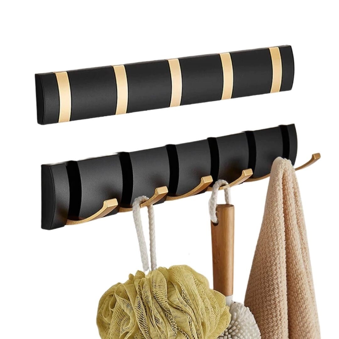 【在庫限り】ウォールフック 5連 折りたたみ式 ブラックゴールド 取り付けフック フック セット テレビ エアコン 収納 便利 雑貨 シンプル 壁 賃貸 壁掛けフック 浴室 キッチン お風呂 バスルーム 引っ掛け イベント 景品 賞品 ギフト バースデー お誕生日祝い クリスマス