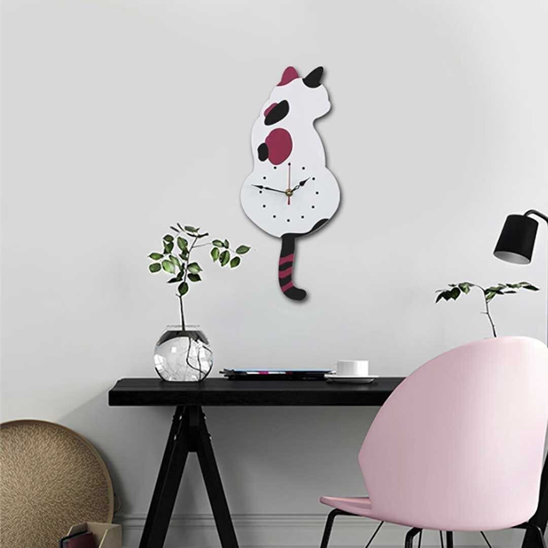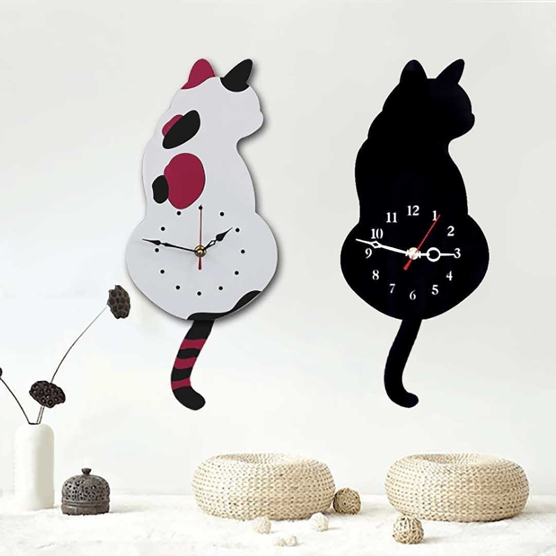 壁掛け時計 猫 尻尾 ふりふり 振り子時計 ブラックorホワイト インテリア 贈り物 新築祝い 引越し祝い 結婚祝い お誕生日祝い カフェ レストラン 店内装飾 リラックスタイム 心身 リラックス 時間 連続秒針 無音 睡眠 仕事環境 疲れた体 癒し 心 癒すアイテム かわいい 振り子しっぽ 見ているだけでも 和み 飾るだけで おしゃれ 家族 友人 お客様 雰囲気 演出