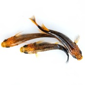 透明鱗性である事が重要で、五式の魅力的なヒレは透明鱗性の個体に発現します。 可愛らしいピンク体色と、背中に輝く強い光が特徴のメダカです。 体色固定率は90%以上で、安定してピンク体色と黒ベースの個体が産まれてきます