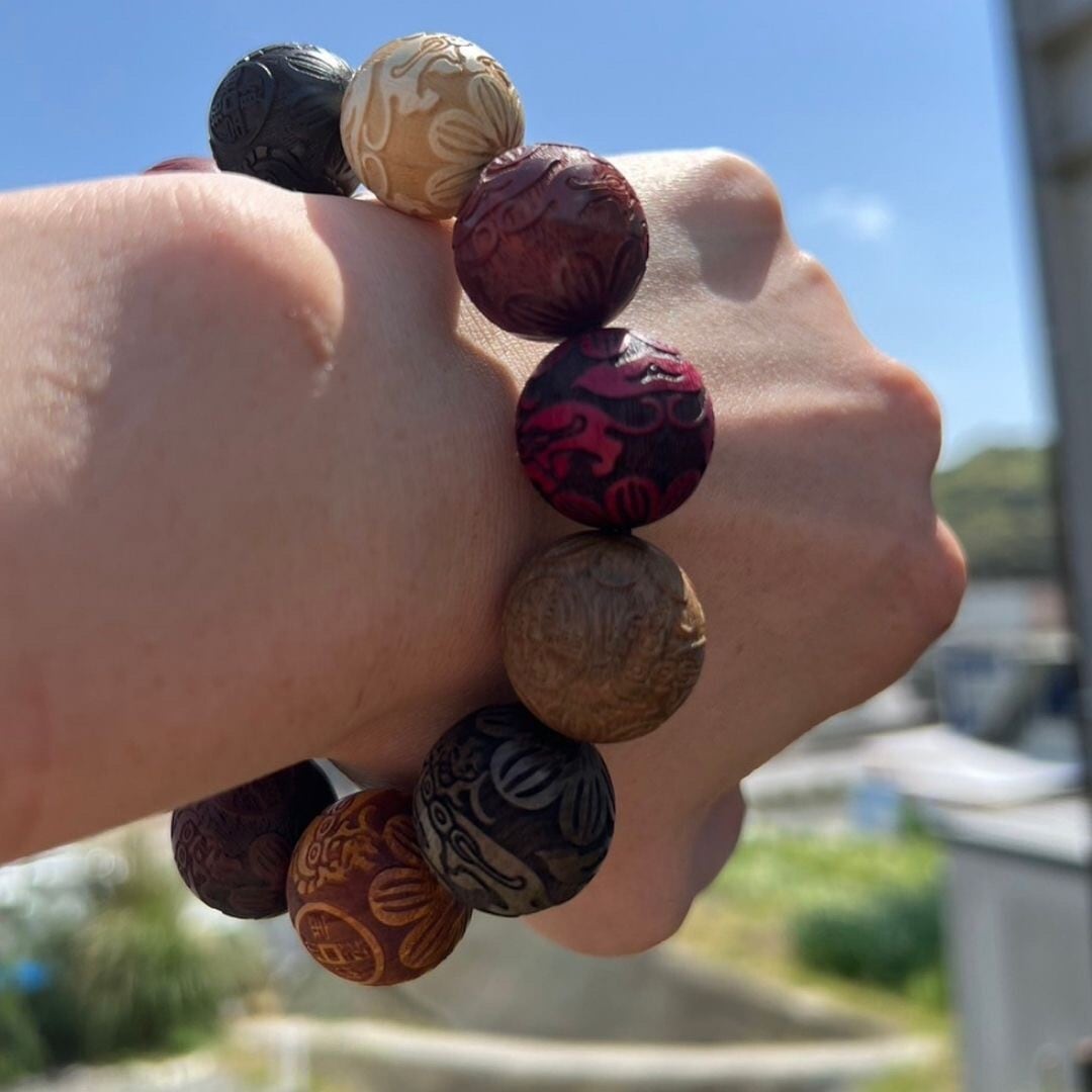 この木製の珠でできたブレスレットにもそうした意味が込められており、風水とファッション性を兼ね備えたブレスレットとなっております