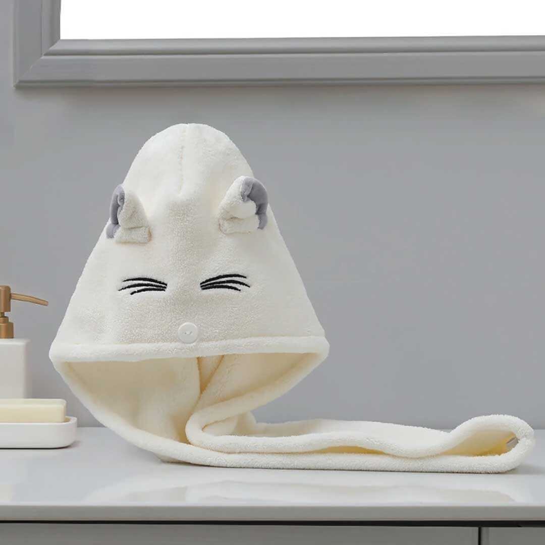 そこでおすすめなのが、猫モチーフの速乾ヘアタオルです!しっかりと髪の水分を吸収してくれます。それに、タオルで髪を擦ることが減るため、髪のダメージを軽減し、パサつきを防ぎます。更に、ボタン付きで髪をしっかりとまとめることができ、自由な時間を楽しめます