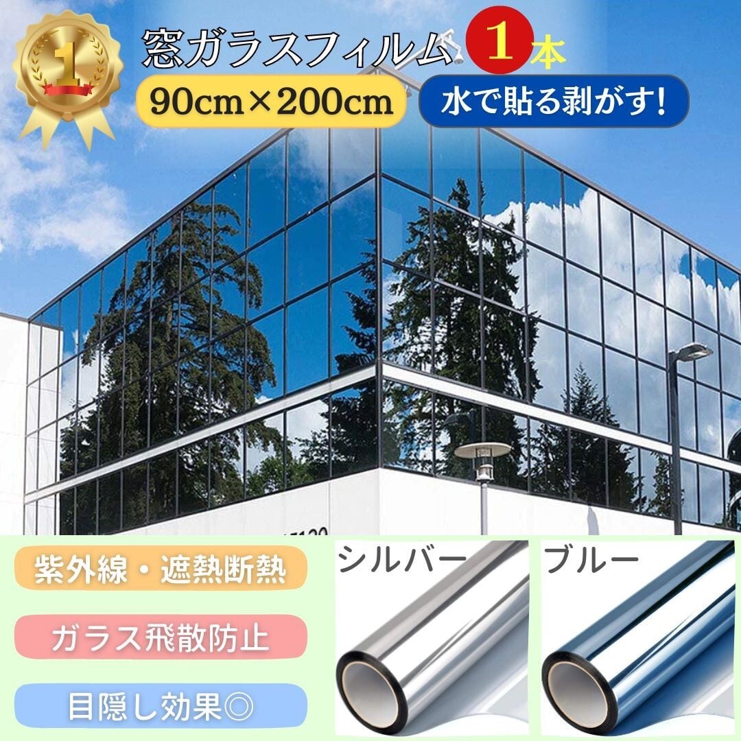 【在庫限り】窓ガラス フィルム 1ロール シルバーorブルー 90cm×200cm ガラスフィルム マジックミラー プライバシー対策 台風対策 断熱シート 窓 目隠し フィルム 遮光 飛散防止 UVカット 紫外線カット 遮熱 diy 断熱フィルム 目隠しシート 窓用フィルム 防災 地震対策