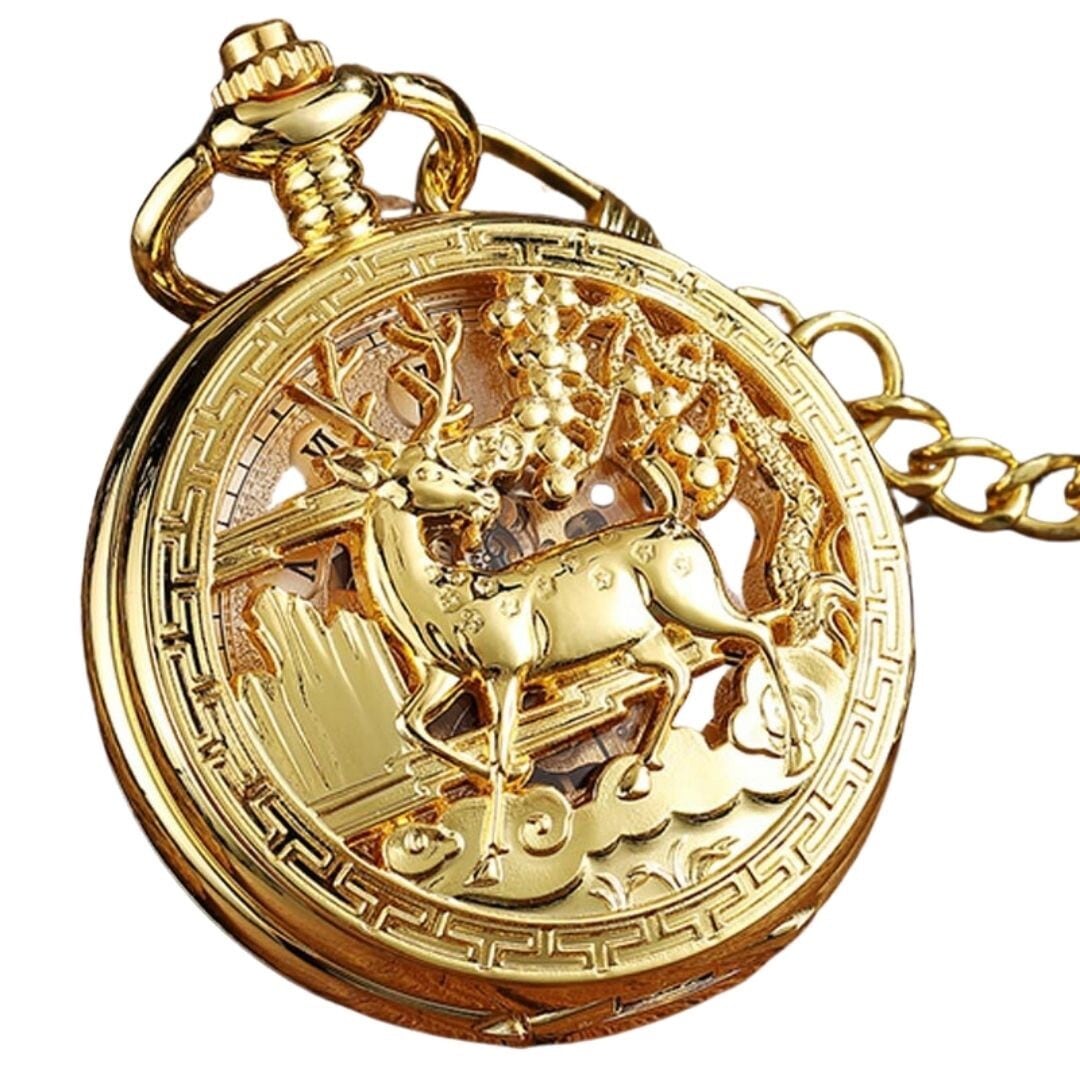 懐中時計 黄金のトナカイ ゴールド 鹿 アンティーク チェーン付き 高耐久性 文字盤 メンズ レディース ユニセックス レトロ クラシック ヴィンテージ感 ペンダント 長持ち おすすめ おしゃれ 時計 キーホルダーウォッチ シンプル カジュアル 仕事 アウトドア 通勤 通学 クリスマス 成人式 記念日 誕生日 スチームパンク プレゼント ギフト 贈り物 ハード ロック パンク コア 個性的 オシャレ かっこいい コーディネート ファッション 普段使い デイリー 大学生 高校生 20代 30代 40代 50代 60代 バースデー ホワイトデー バレンタインデー お祝い 結婚式 ウェディング