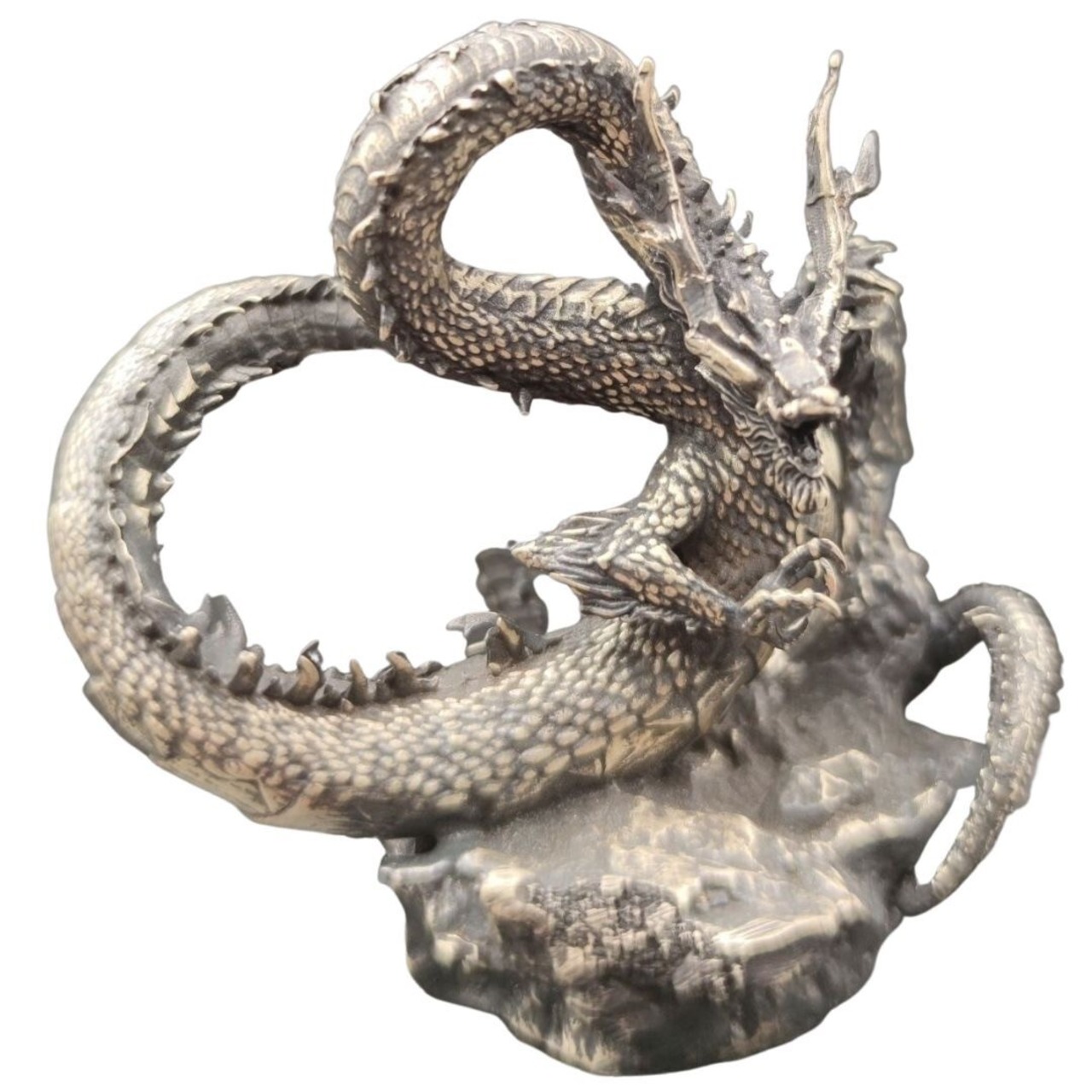 金属で作られた見事な龍の置物です。圧倒的な存在感!