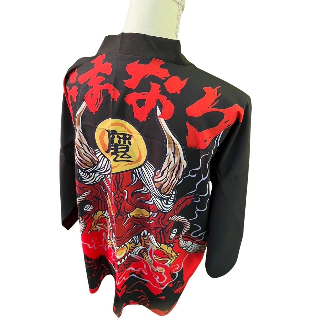 【在庫限り】法被 なまなり 魔 般若 夏祭り 夏恋 寺 韓国ファッション 神社 羽織り 半纏 はんてん ハッピ 長半纏 半天 袢天 半被 お祭り衣装 雅 和柄 ハッピ 羽織 和装 カーディガン 半纏 浴衣 着物 はっぴスタイル かっこいい かわいい 風物詩 モノトーン かわいい お洒落