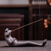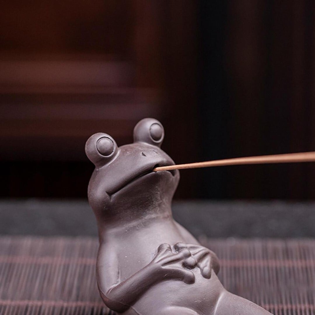 お香立て お香を咥えるカエル 蛙 お香 香炉 香台 線香立 線香皿 インセンスホルダー おしゃれ 和風 葉 モダン スタンド アロマグッズ オブジェ インテリア 置物 香り 匂い 玄関 車 自宅 自粛 ヒーリング 癒し 祈り ヨガ 開運 貴重 神秘 風水 風流 アジアン 雑貨 仏具 中国 インセンスホルダー 煙