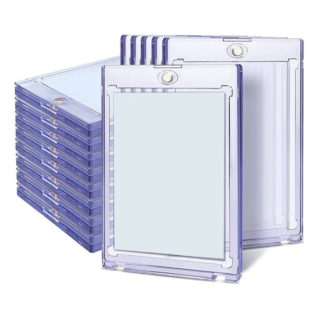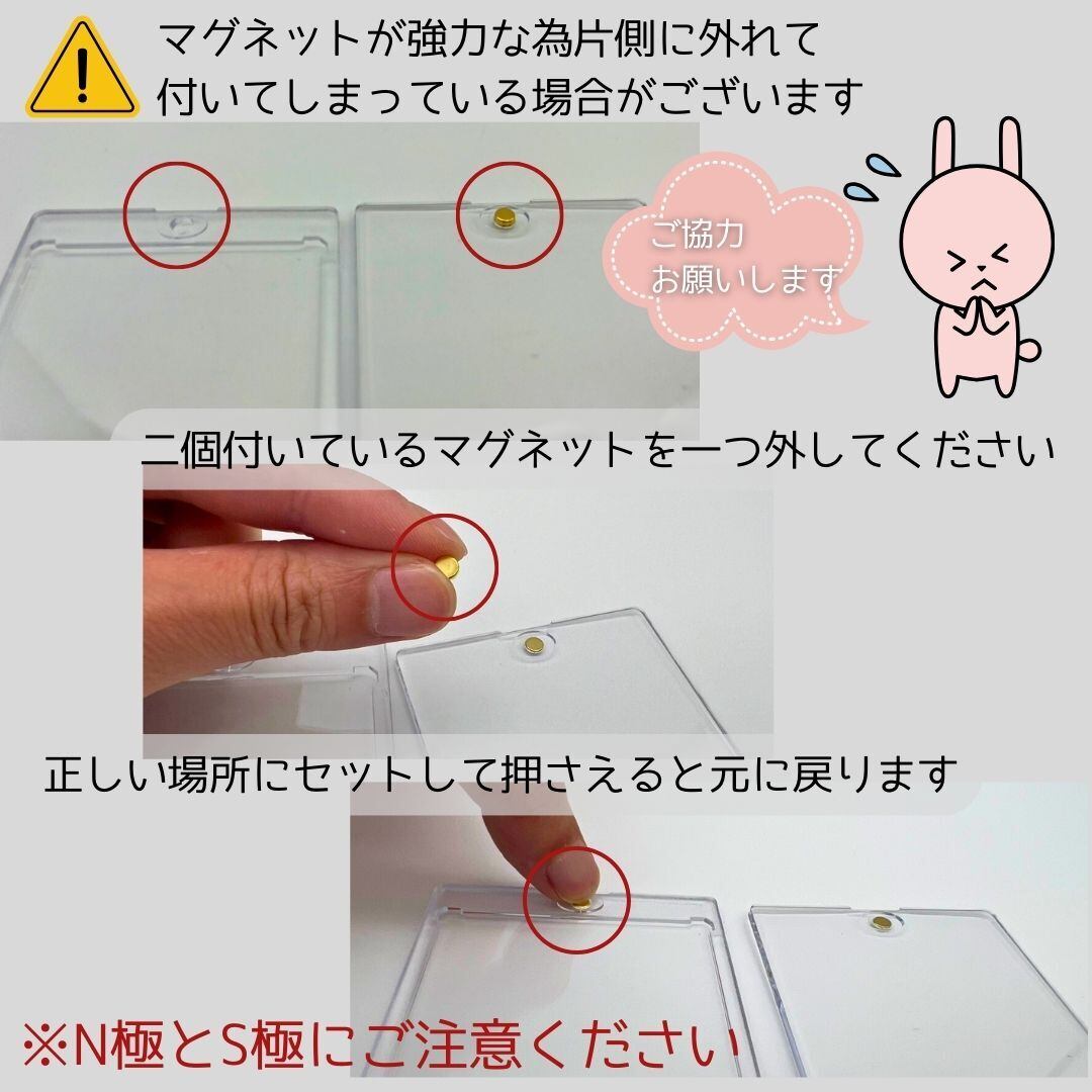 トレーディングカードを大切に保管できるプラスチックケースです。マグネット式のためねじ式のスクリューダウンに比べて取り外しがしやすく、カードの交換や保管をスムーズに行うことができます。