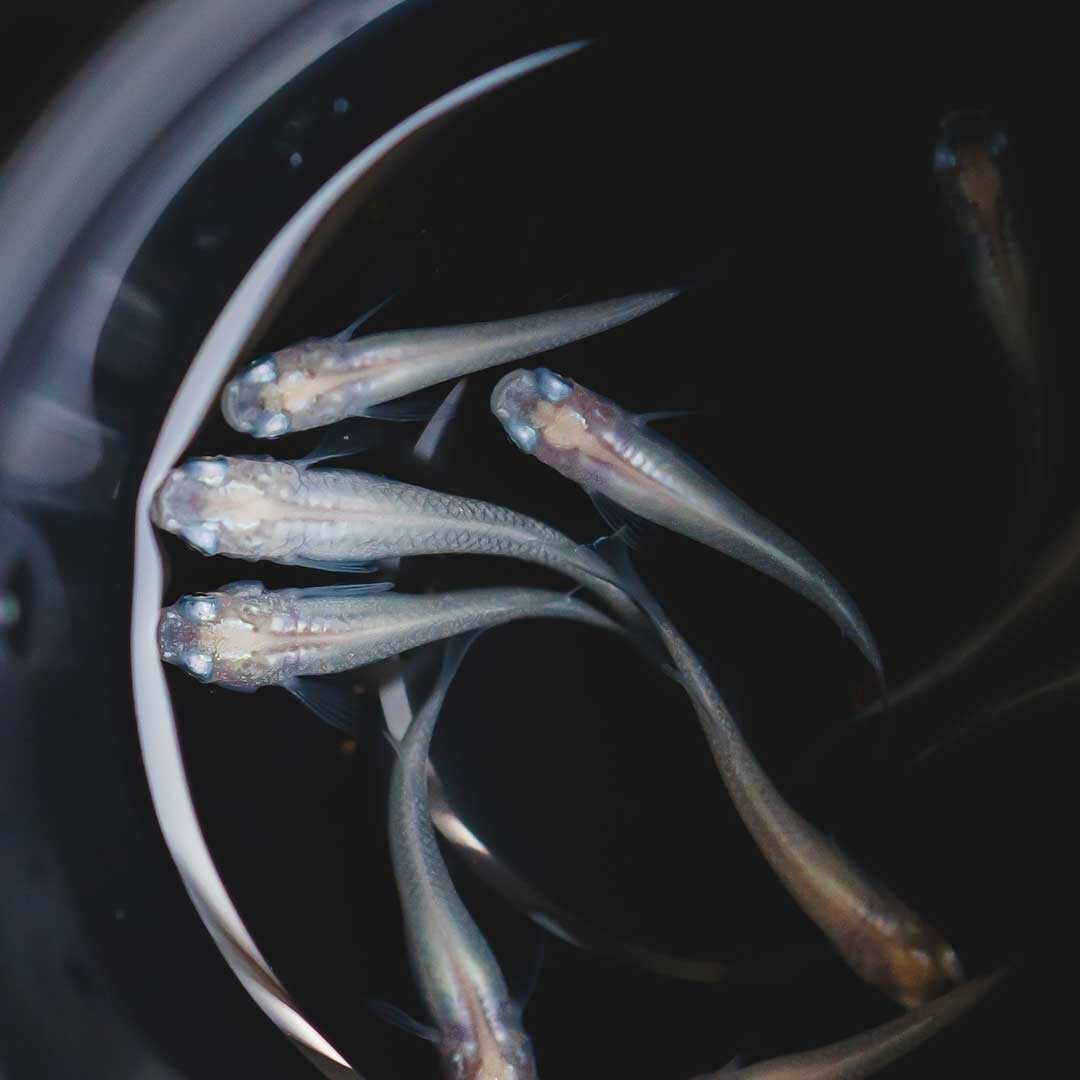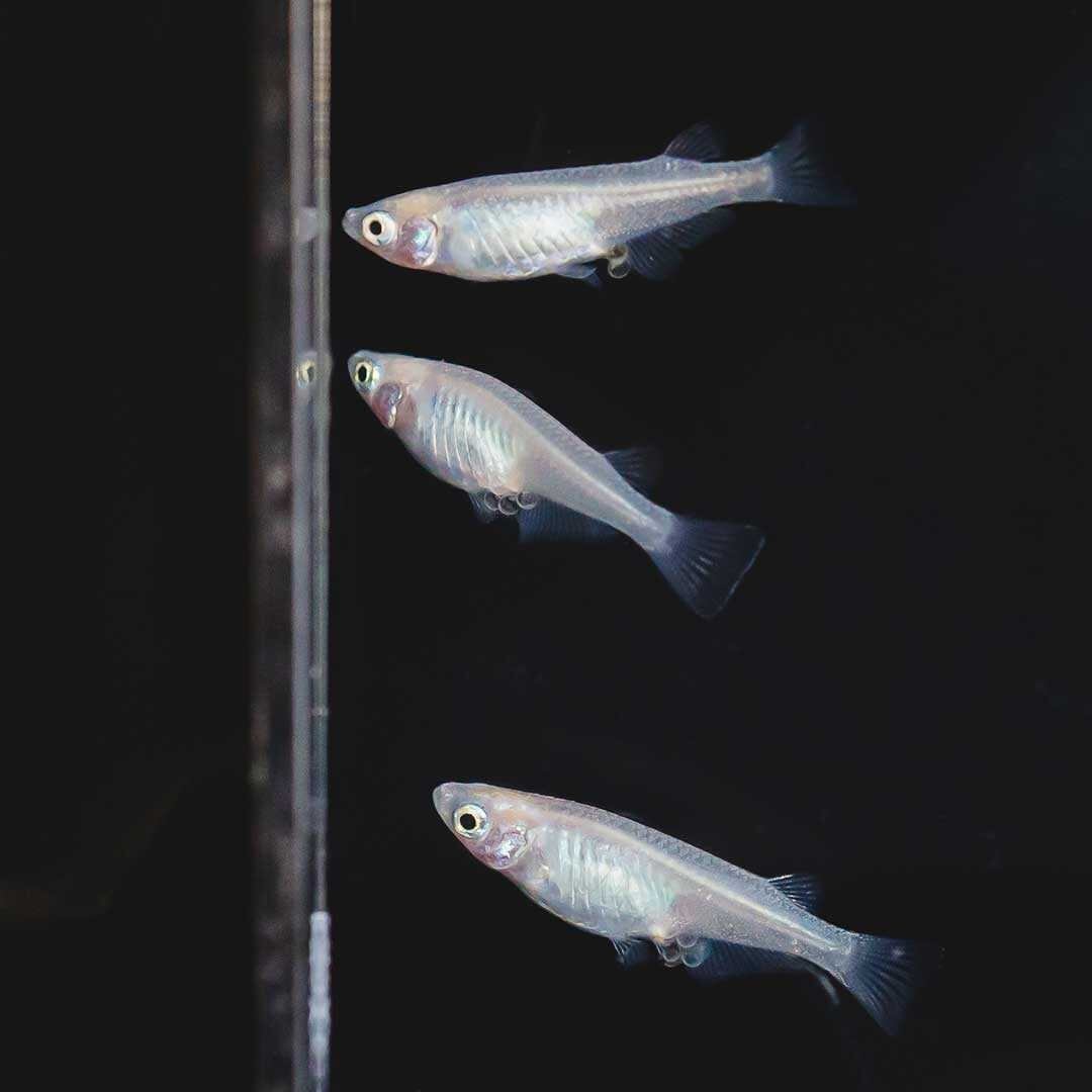 一般的に知られている白メダカには黄色素胞のあるクリーム(シルキー)が生まれます。ピュアホワイト同士の交配では黄色素胞のある個体が生まれません。このことから、白メダカの白体色と分けるためにピュアホワイトの体色のことを「純白」と呼んだりします