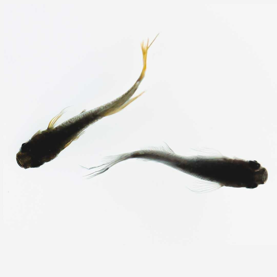 ブラック黄金体色(背地反応なし)でスワローの形質を持つヒカリ体型の品種です。各ヒレに黄金色をまとい、華やかなメダカの信玄。スワローの特徴の一つに、伸長したヒレに色が発現することが挙げられますが「信玄」のヒレにもしっかりと黄金色が発現しています