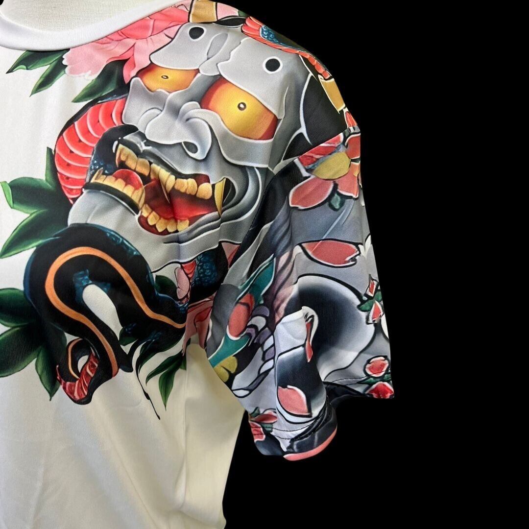 Tシャツ 双肩和彫 半袖 MorLorXL 選べる3サイズ 和柄 般若 トップス 韓国ファッション メンズ レディース 男女兼用 ビッグシルエット ふんわり袖 ルーズ メンズライク おうち時間 部屋着 ルームウェア リラックススタイル リラックス ワンマイルウェア 大きいサイズ 大きい 大きめ ゆったり 体型カバー 小顔 楽ちん 楽チン カジュアル ナチュラル おしゃれ オシャレ 可愛い かわいい きれいめ キレイめ 大人 オトナ 上品 シンプル ベーシック 秋 秋服 秋物 秋新着 秋冬 冬服 冬物 冬 冬新着 2023 服 新作 新着 風流 風情 風水 舞台ステージ衣装 演出服